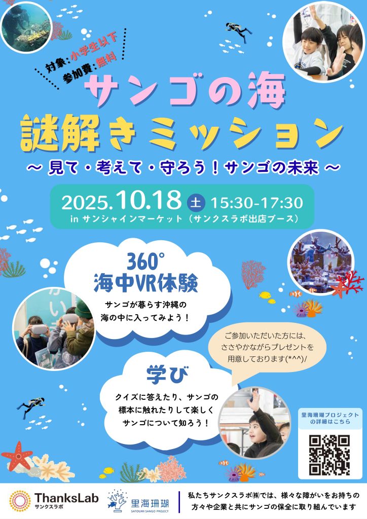 10月18日(土)高知ユナイテッドSCでは、オフィシャルパートナーで当日の冠パートナーでもある、サンクスラボ様の特設ブースで「サンゴの海 謎解きミッション」を開催いたします。