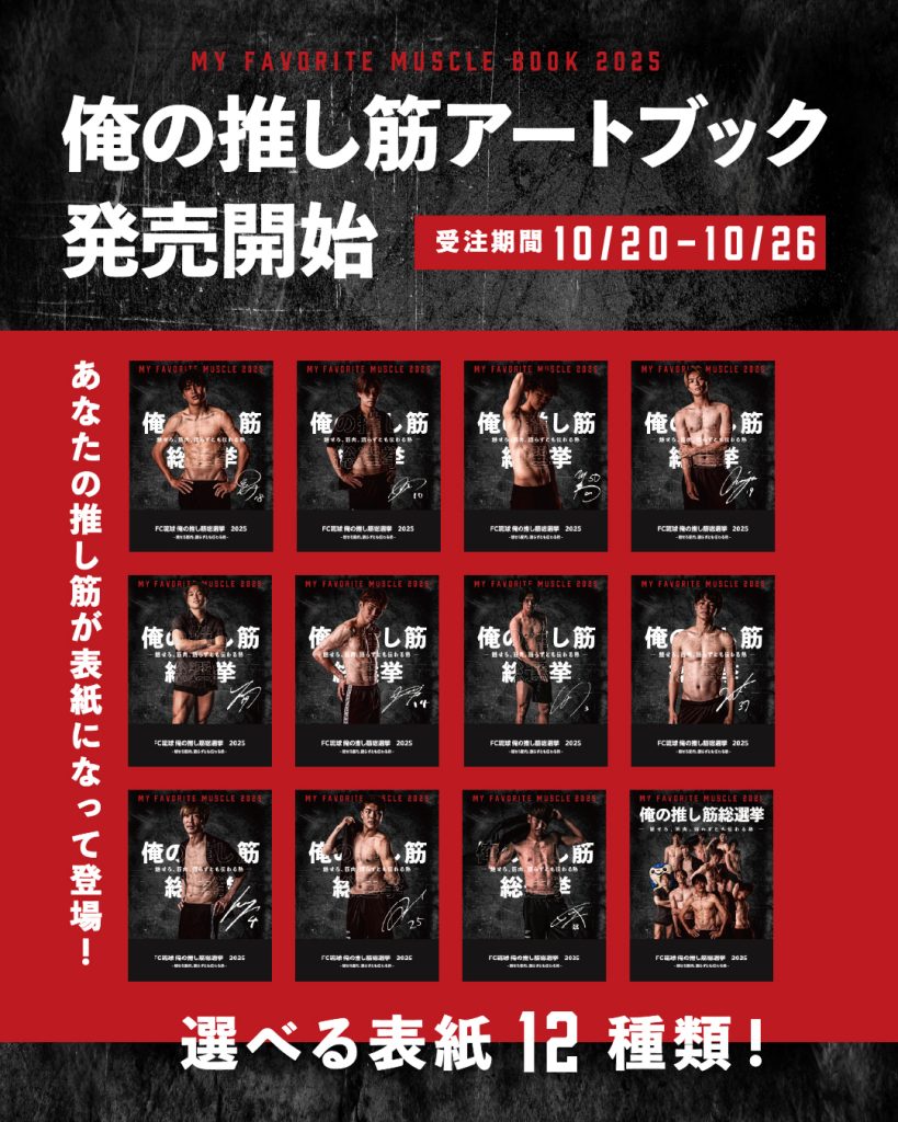 今年の推しメン企画として実施した「俺の推し筋 総選挙2025」 にて、上位11人に選ばれた選手たちの筋肉アートブックを受注販売いたします!