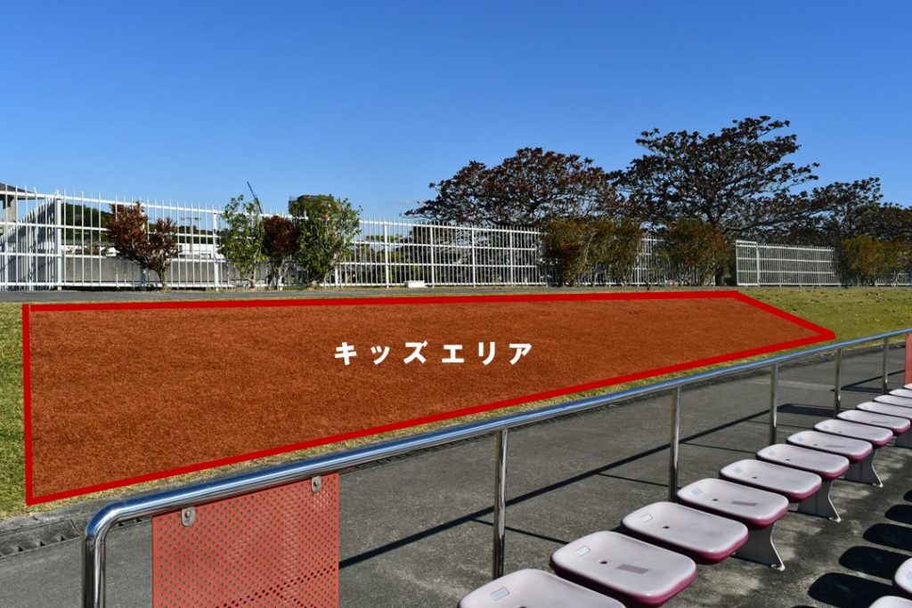 安心して試合を観戦していただけるよう、座席後方の芝生スペースを子どもたちが自由に遊べる「キッズエリア」として併設。お子様がぐずってしまった場合でも、芝の上を歩かせたり、あやしたりしながら試合観戦をお楽しみいただけます。オフィシャルパートナーである 三幸学園 沖縄こども専門学校様 のご協力で、保育士を目指す学生たちがお子様のお世話をサポート。スタンドから安心してサッカー観戦を満喫してください。