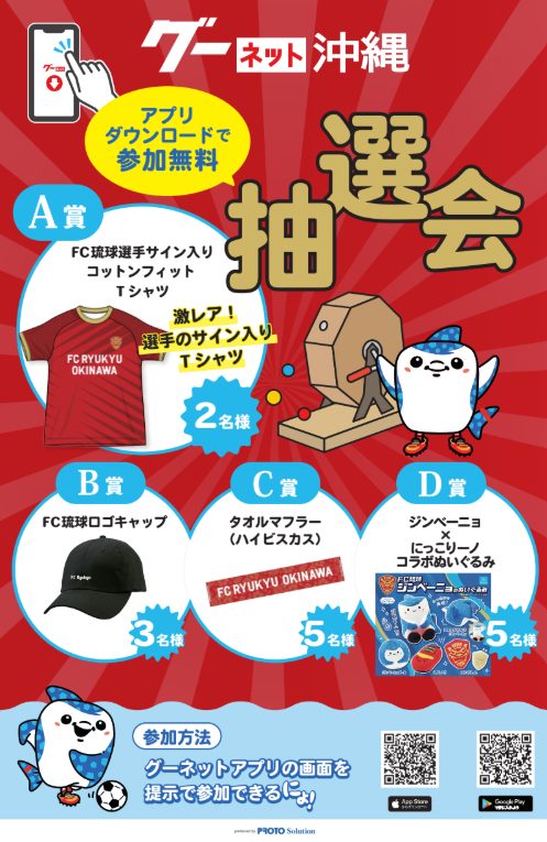 11月29日(土)ヴァンラーレ八戸戦では、沖縄感動パートナーの株式会社プロトソリューション様の提供でFC琉球グッズが当たる抽選会を実施します。