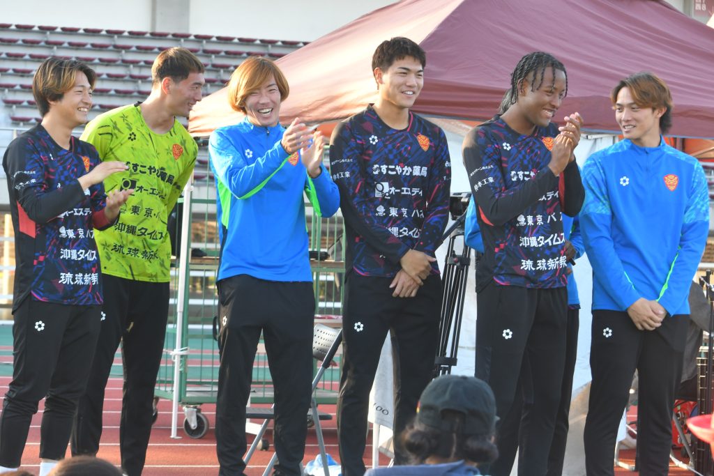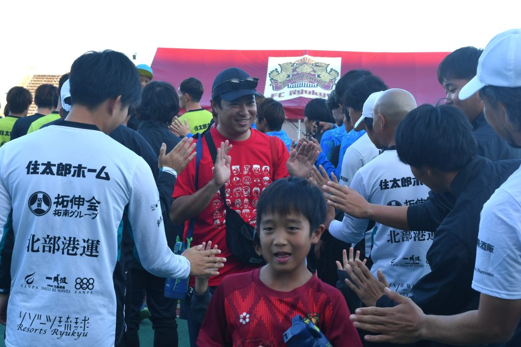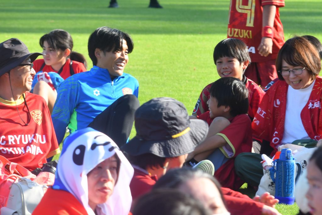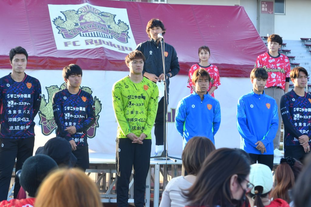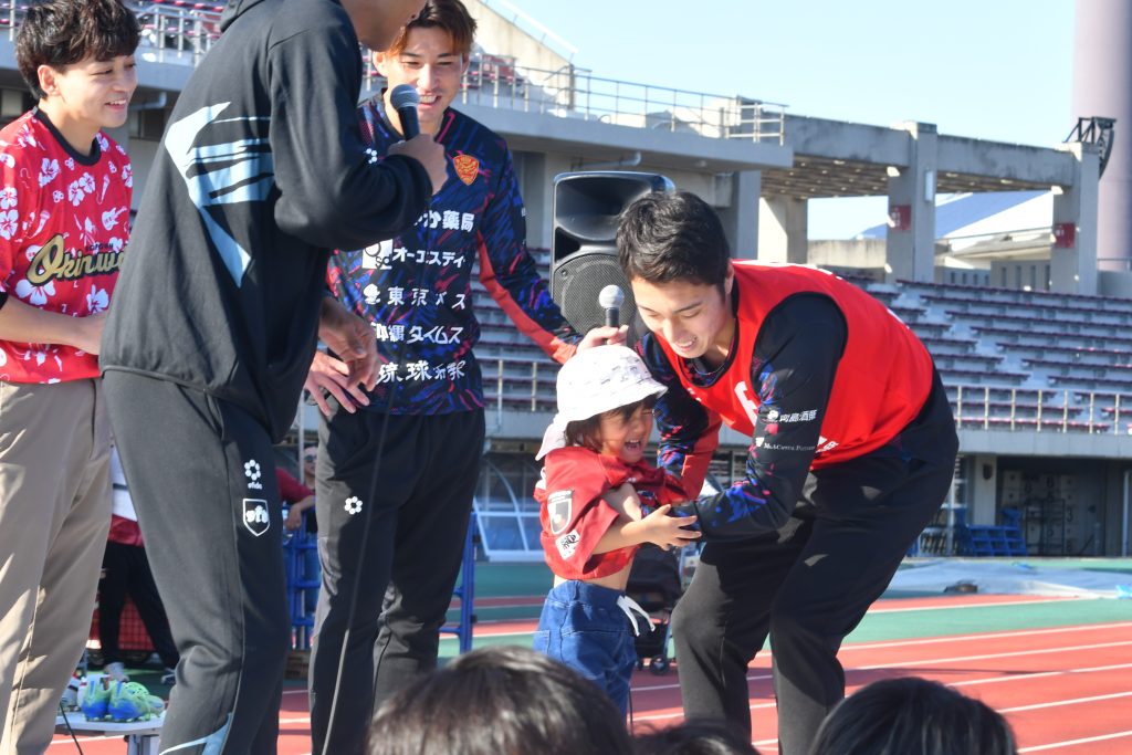今日、多くの子どもたちがいつも通りに来てくれています。このスタジアムは本当に子ども たちの大きな声援が、チームを、選手の背中を押し てくれ ています。 来シーズン以降も是非スタジアムへお越しいただき、子どもたちの大きな声で選手を鼓舞してほしいと思います。同時に、この中 からいつかFC琉球やFC琉球さくらのエンブレムを背負って、このピッチでプレーして、沖縄のために闘う、そんな選手の姿が見られたらいいなと、今日子どもたちの顔を見ながら思っていました。そういった繋がりが沖縄を強くしていくと 思いますし、我々選手スタッフも沖縄のために皆で力を合わせてやっていきます。ぜひ、引き続き応援よろしくお願いします」