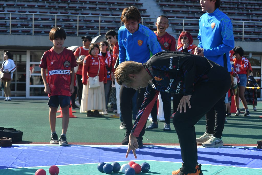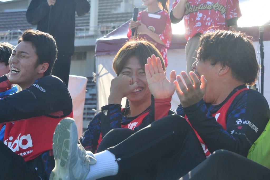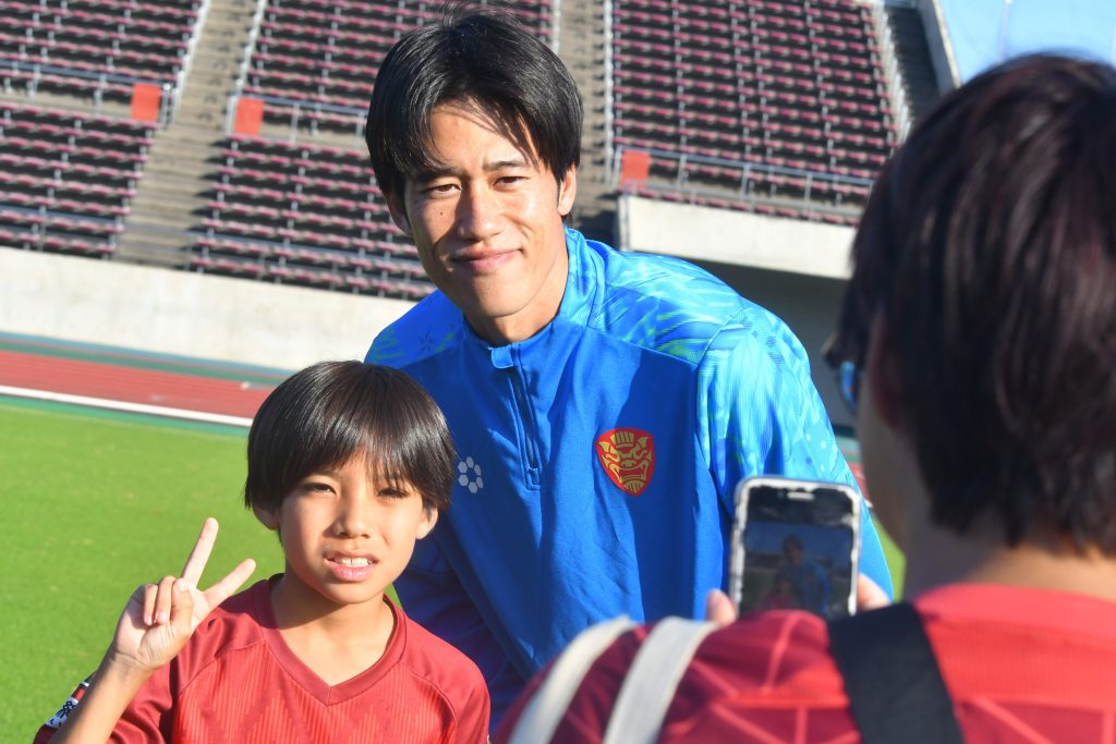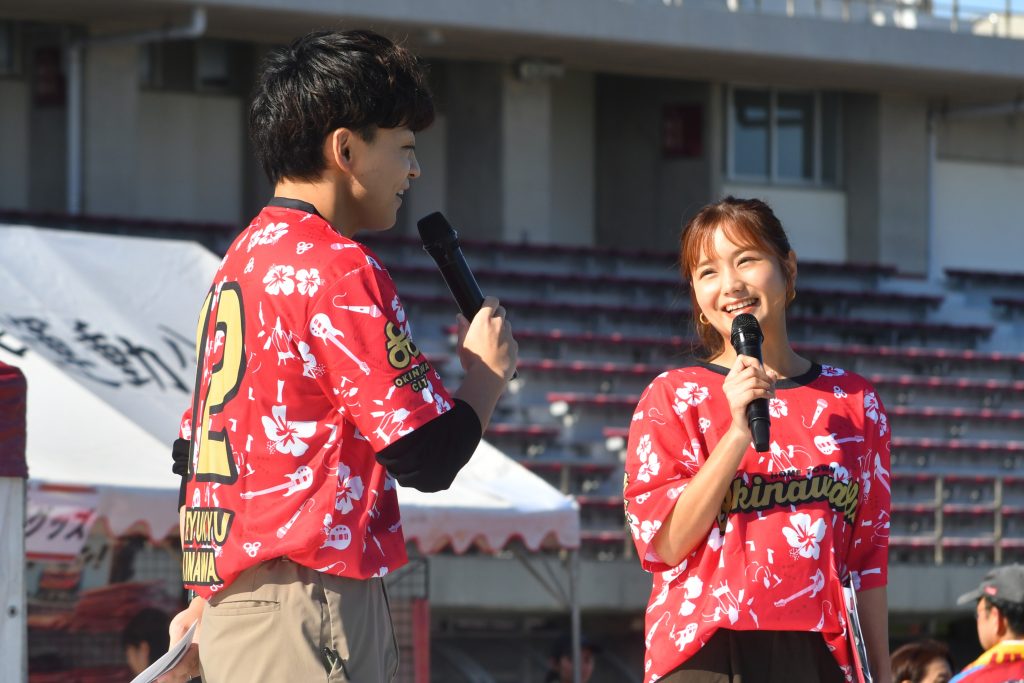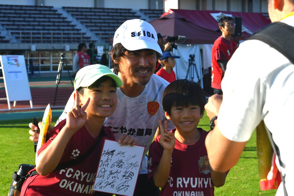 今日、多くの子どもたちがいつも通りに来てくれています。このスタジアムは本当に子ども たちの大きな声援が、チームを、選手の背中を押し てくれ ています。 来シーズン以降も是非スタジアムへお越しいただき、子どもたちの大きな声で選手を鼓舞してほしいと思います。同時に、この中 からいつかFC琉球やFC琉球さくらのエンブレムを背負って、このピッチでプレーして、沖縄のために闘う、そんな選手の姿が見られたらいいなと、今日子どもたちの顔を見ながら思っていました。そういった繋がりが沖縄を強くしていくと 思いますし、我々選手スタッフも沖縄のために皆で力を合わせてやっていきます。ぜひ、引き続き応援よろしくお願いします」