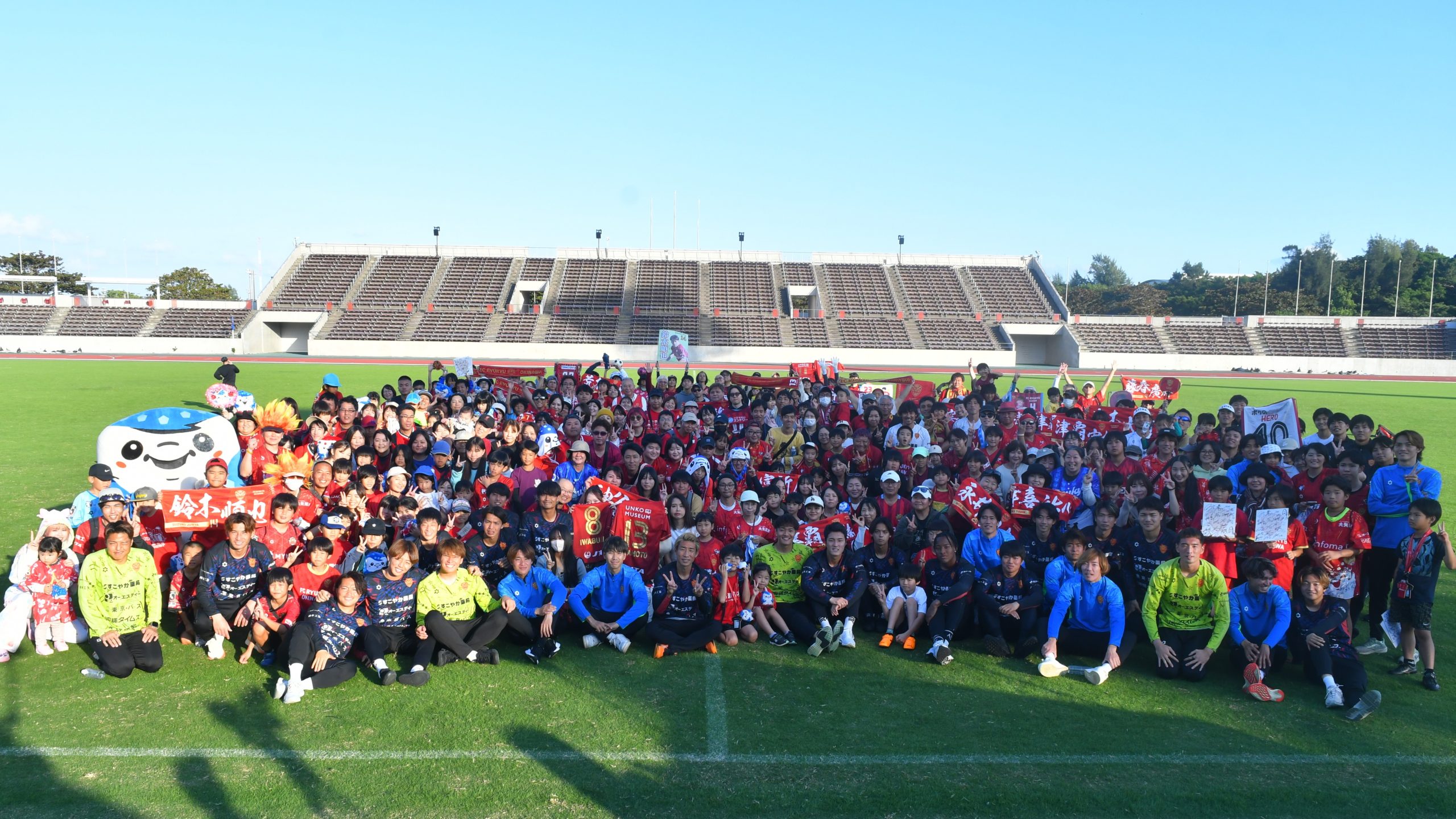 今日、多くの子どもたちがいつも通りに来てくれています。このスタジアムは本当に子ども たちの大きな声援が、チームを、選手の背中を押し てくれ ています。 来シーズン以降も是非スタジアムへお越しいただき、子どもたちの大きな声で選手を鼓舞してほしいと思います。同時に、この中 からいつかFC琉球やFC琉球さくらのエンブレムを背負って、このピッチでプレーして、沖縄のために闘う、そんな選手の姿が見られたらいいなと、今日子どもたちの顔を見ながら思っていました。そういった繋がりが沖縄を強くしていくと 思いますし、我々選手スタッフも沖縄のために皆で力を合わせてやっていきます。ぜひ、引き続き応援よろしくお願いします」