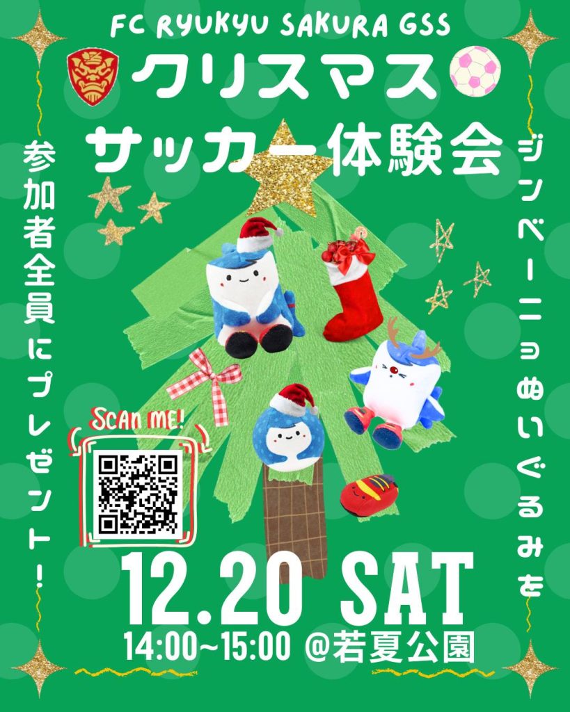 みんなで楽しくボールを蹴って、クリスマスを盛り上げましょう!さらに、参加者全員にジンベーニョぬいぐるみをプレゼントいたします!