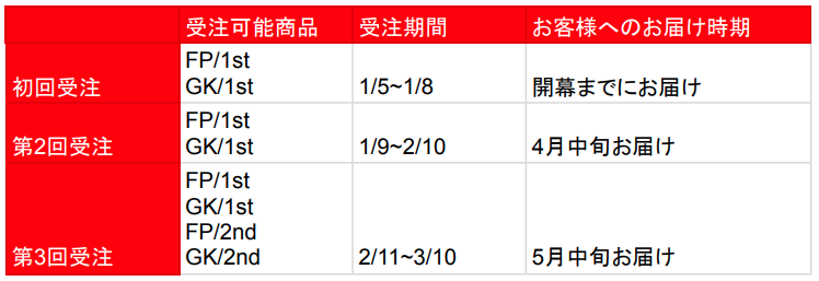 ■ユニフォーム販売スケジュール