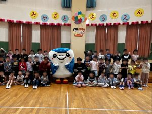 ・日 時:2/3(火)・訪問先:名護市 大宮幼稚園・参加者:岩渕良太アカデミーコーチ、ジンベーニョ・内 容:ふれあい活動、開幕戦告知