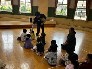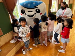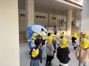 ・日 時:1/23(金)・訪問先:沖縄市 宮里保育園・参加者:上原慎也クラブコミュニケーター、岩渕良太アカデミーコーチ、ジンベーニョ・内 容:ふれあい活動