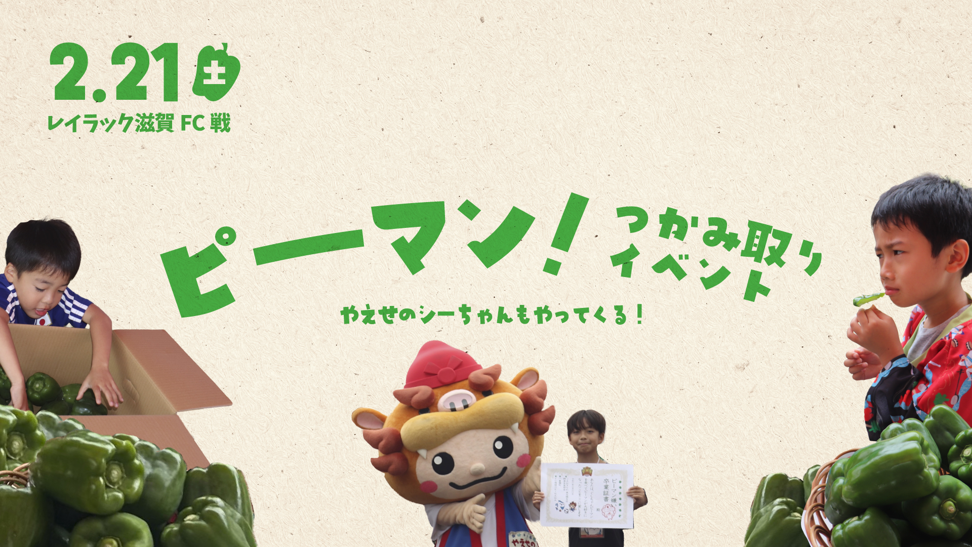 2/21(土)滋賀戦 ぐしちゃんピーマン 掴み取り&試食 実施のお知らせ