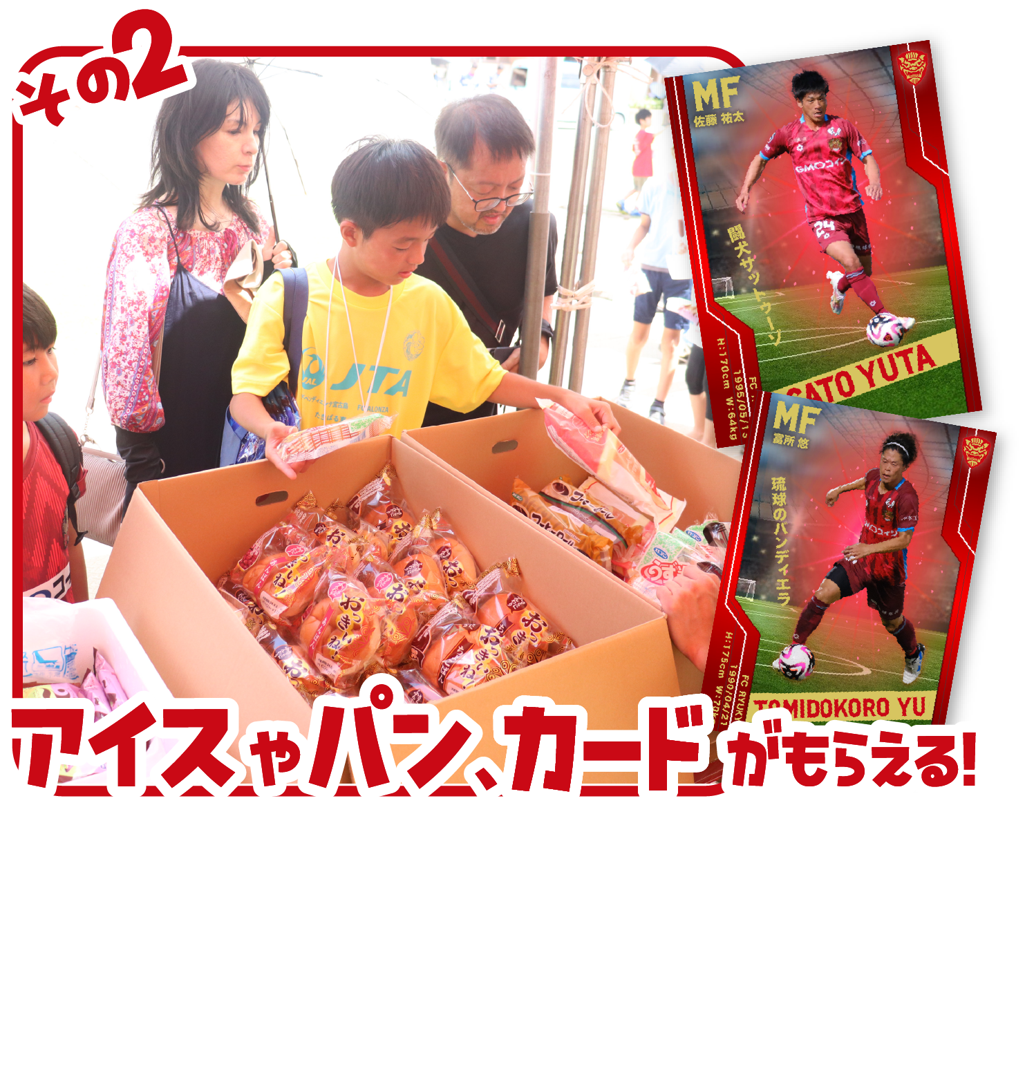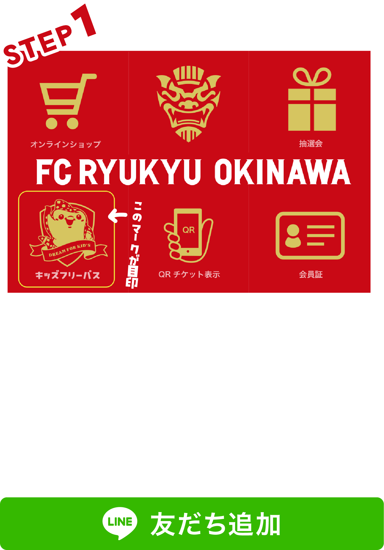 夢に向かって進む沖縄の子どもたちをサポートしたいというFC琉球の想いに賛同いただいた企業様が、子ども達の入場を負担してくださり、この“キッズフリーパス(旧夢パス)”は誕生しました。小学生以下のお子様は“キッズフリーパス”に申込んでいただくと、FC琉球のホームゲーム全試合に無料でご入場いただけます。家族でスタジアムに出掛け、サポーター全員で地元チームの戦いに感動と悔しさを共有する…これは、かけがえのない経験となることでしょう。ぜひスタジアムに足を運び選手たちへの熱いご声援をよろしくお願い申し上げます。